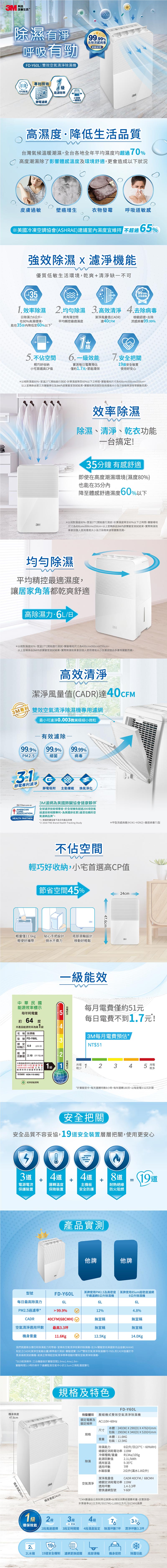 3M 淨呼吸 FD-Y60L 雙效空氣清淨除濕機-6公升