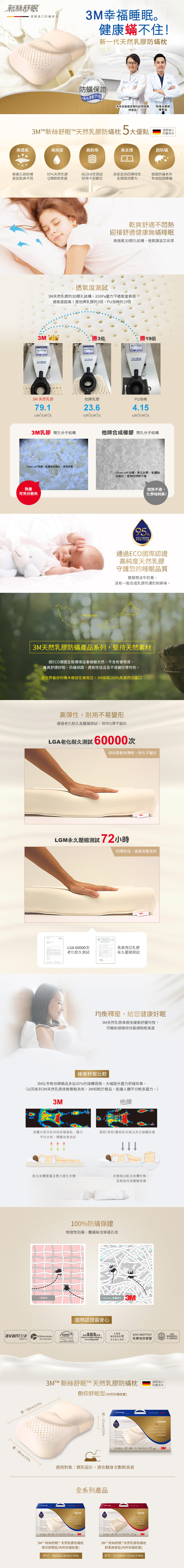 3M 新絲舒眠天然乳膠防蟎枕-側仰舒眠型