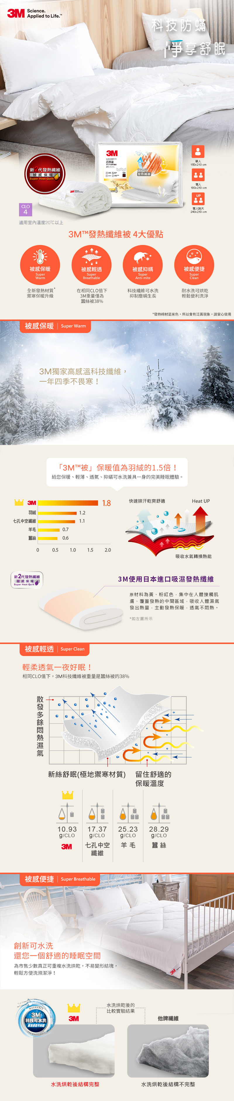 - 被感輕透-在相同CLO值下,3M重量僅為蠶絲被38%