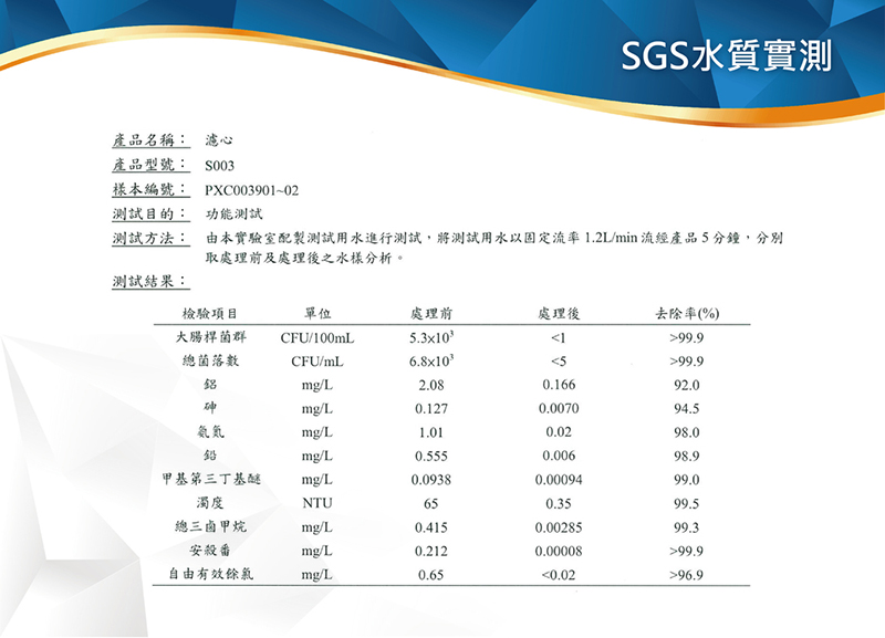 - ◆可去除水中99.95%孢子孢囊有害微生物