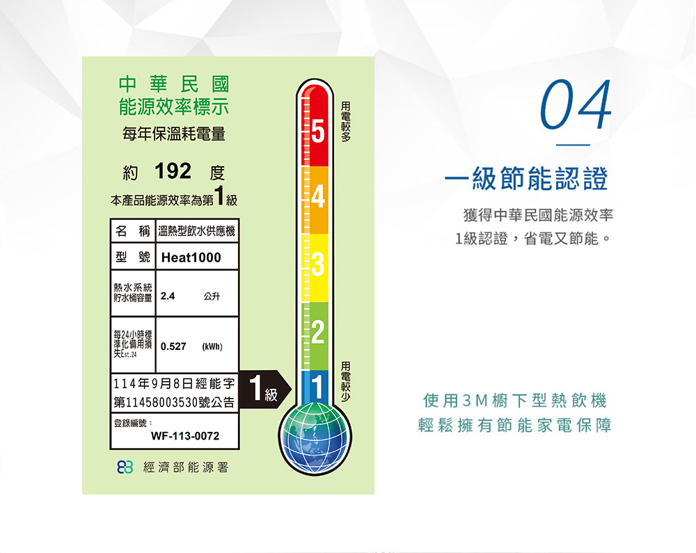 ◆HEAT1000熱飲機能源效率等級:一級能效