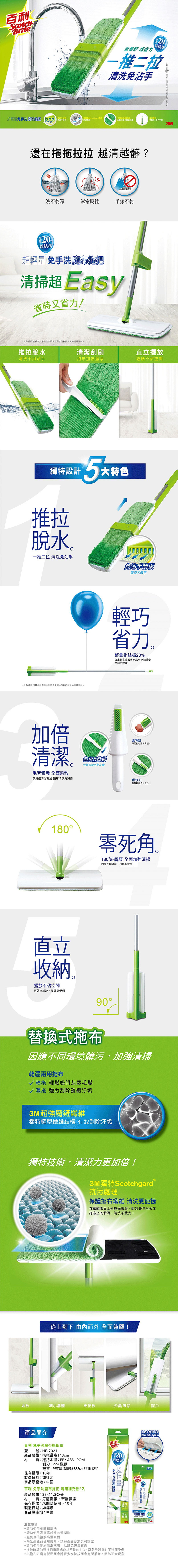 ◆【3M Scotchgard 抗汙處理】保護拖布纖維,清洗更便捷。