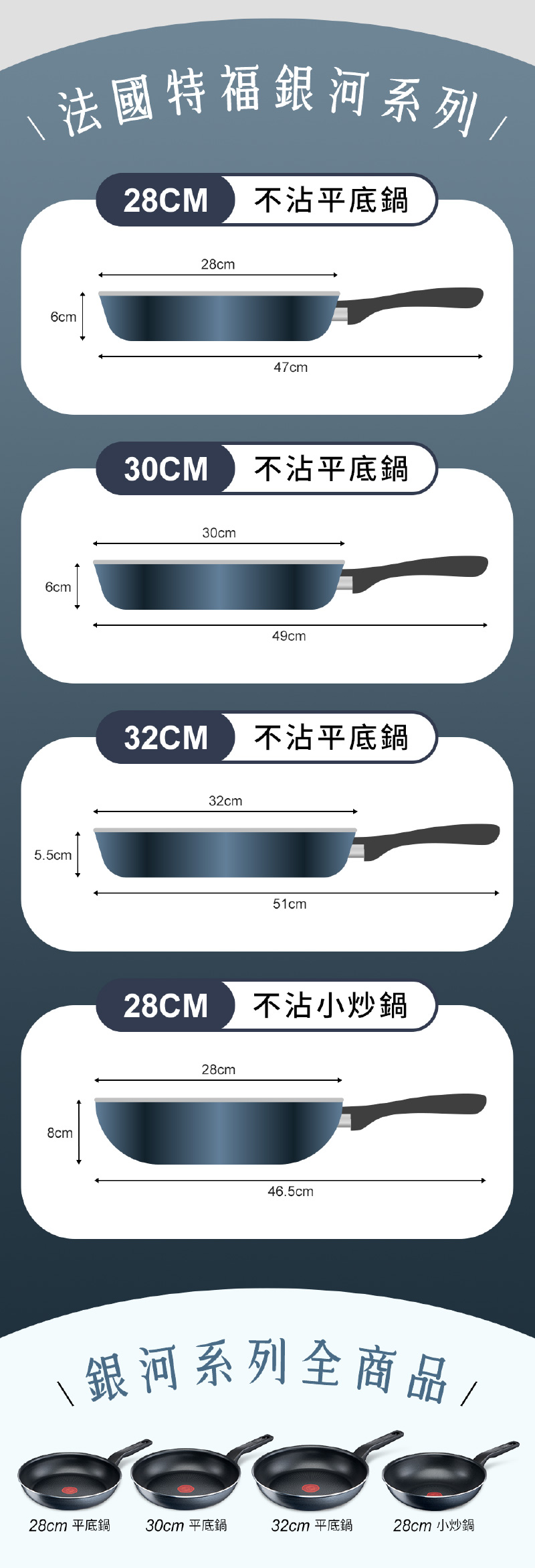 ◆尺寸:鍋具口徑28cm/鍋底直徑22.3cm/含鍋把總長47cm/鍋深6cm