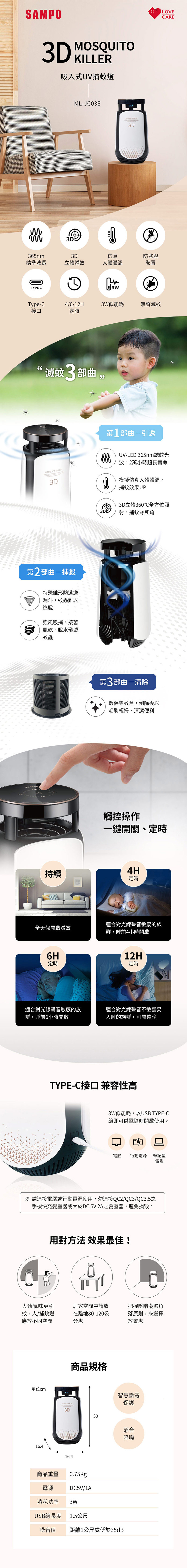 SAMPO聲寶ML-JC03E 吸入式UV捕蚊燈