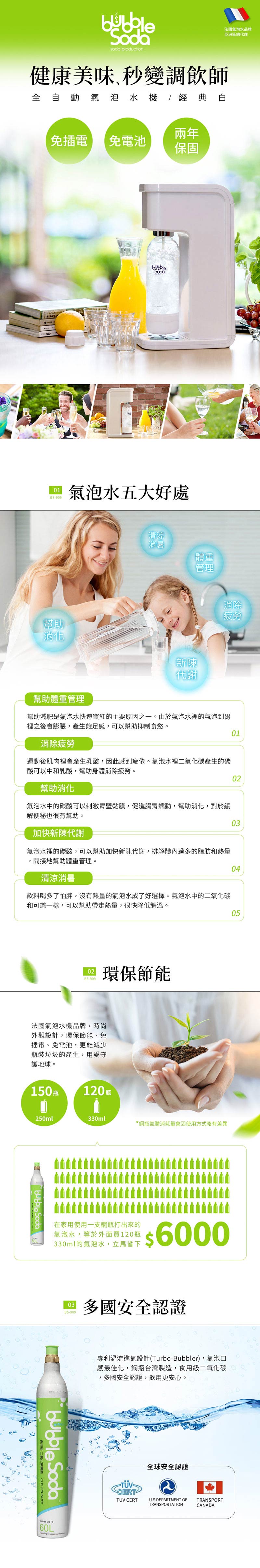 BubbleSoda 全自動氣泡水機-經典白BS-909