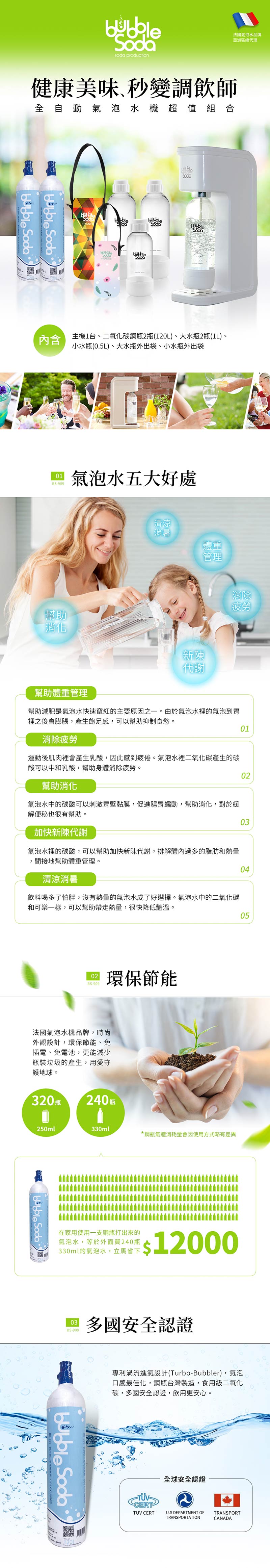 BubbleSoda 全自動氣泡水機-經典白大氣瓶超值組合