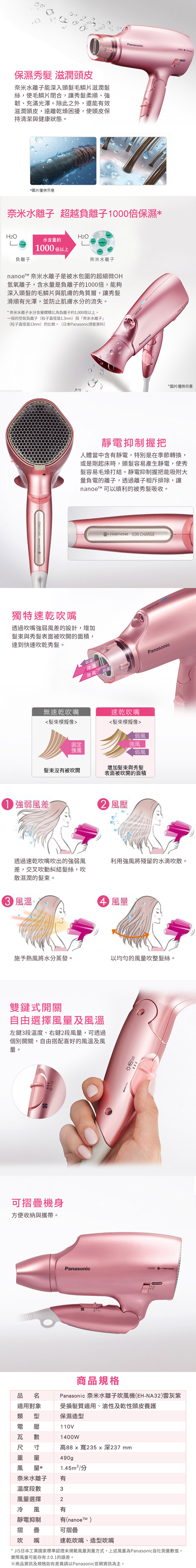 Panasonic 奈米水離子吹風機(雲灰紫) EH-NA32-T