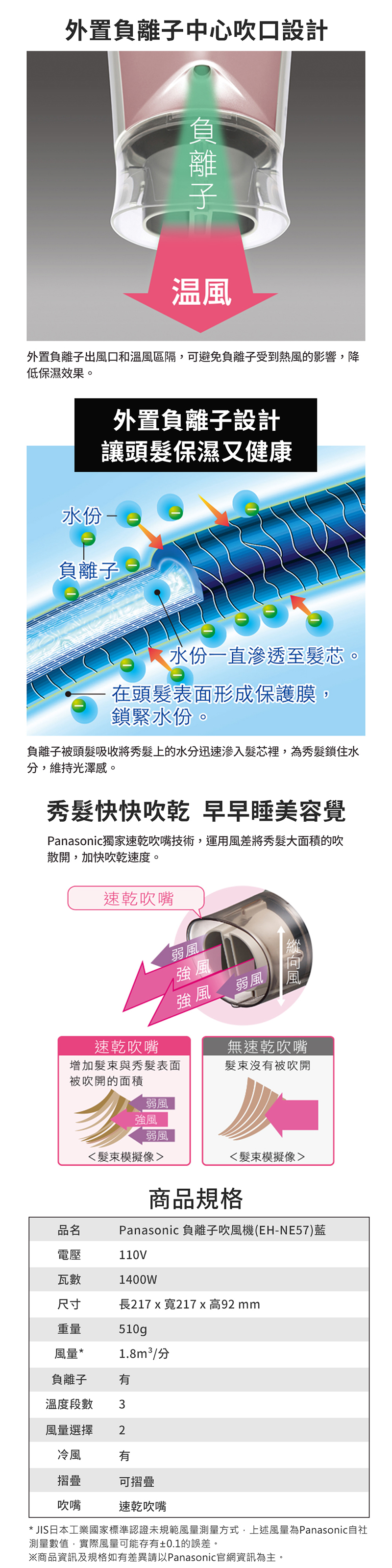 ◆外置負離子設計,可避免負離子受到熱風影響降低保濕效果。