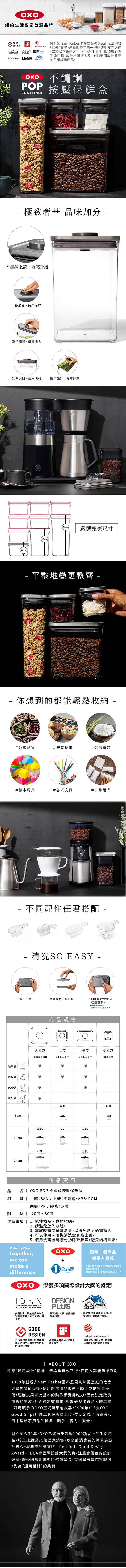 OXO POP 不鏽鋼按壓保鮮盒 正方1.L(兩入組)