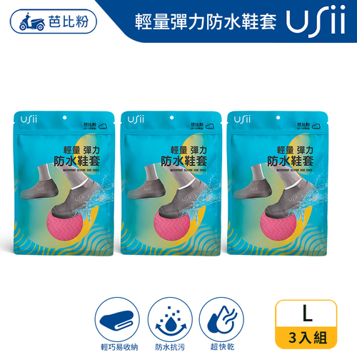 Usii 輕量彈力防水鞋套-芭比粉 L(3入組)