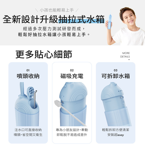 ◆全新升級伸縮水箱,更好抽拉與拆卸,小孩也能輕易上手。
