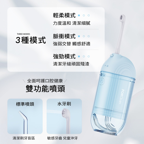 PORClean 寶可齡 樂樂多功能沖牙機(標準噴嘴*2+水牙刷*1) WASH 302 (小粉藍)