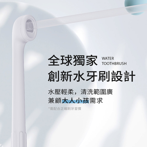 - 創新水牙刷噴頭,水壓輕柔兼顧大人小孩需求