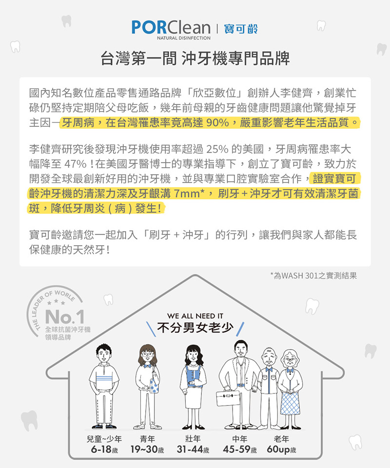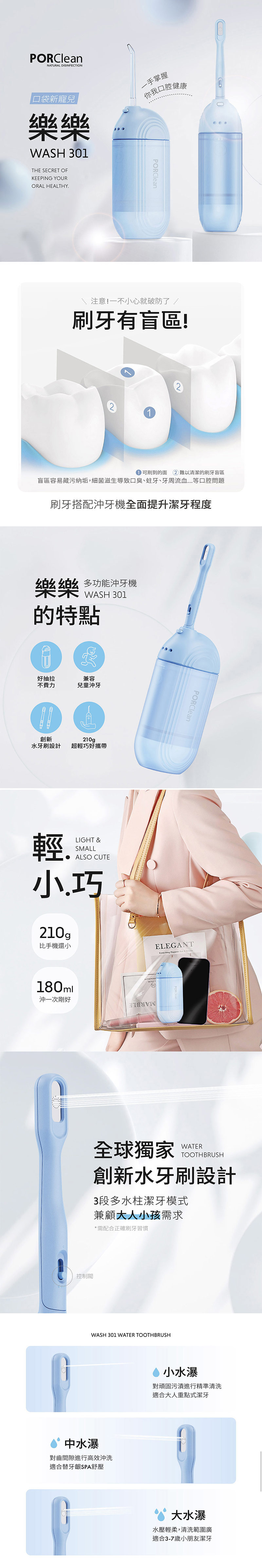 PORClean 寶可齡 樂樂多功能沖牙機【樂樂二入組】(標準噴嘴*4+水牙刷*2) WASH 301
