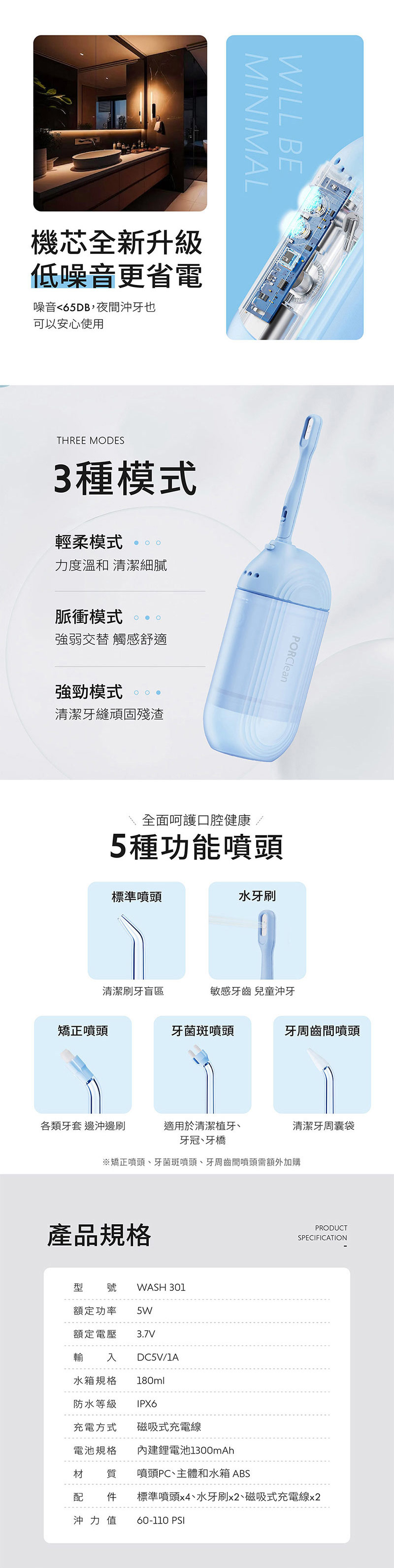 ◆機芯全新升級,噪音<65分貝,夜間沖牙也可以安心使用。