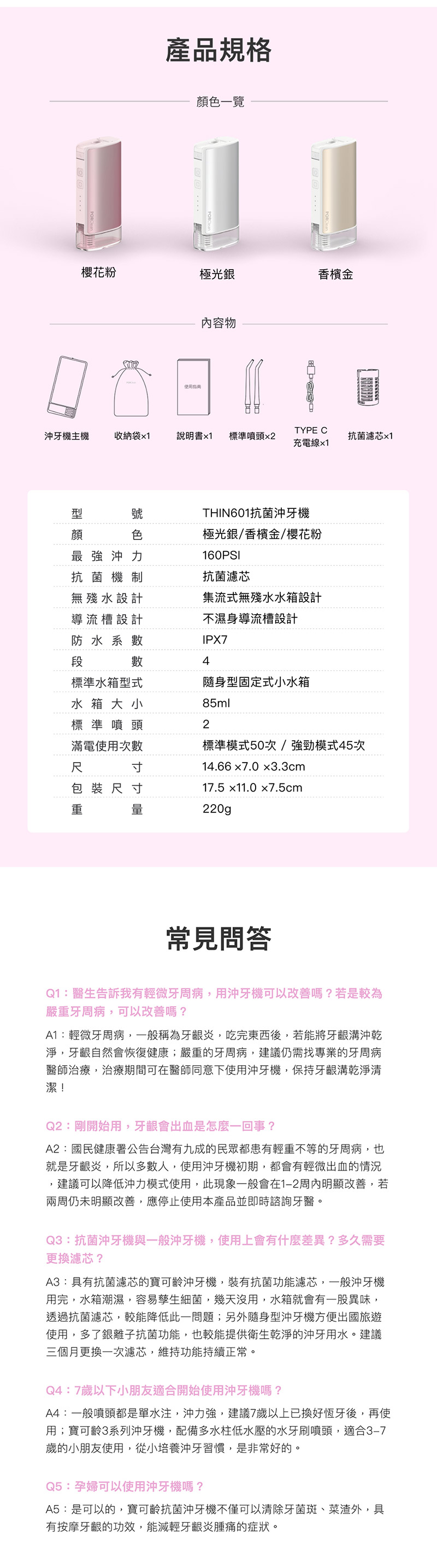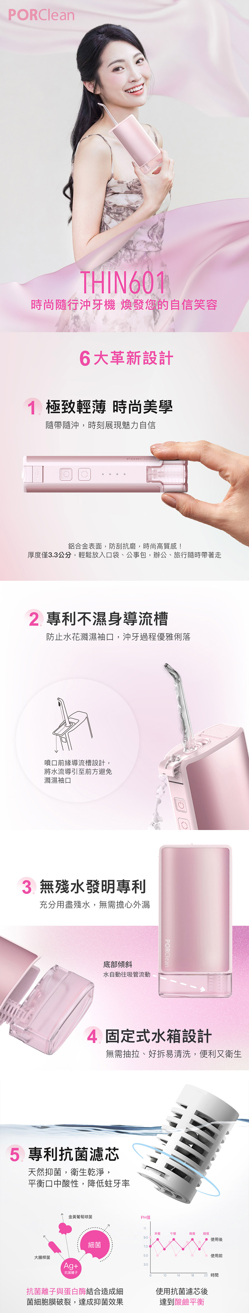 PORClean 寶可齡 隨身型抗菌沖牙機 THIN601 (櫻花粉)