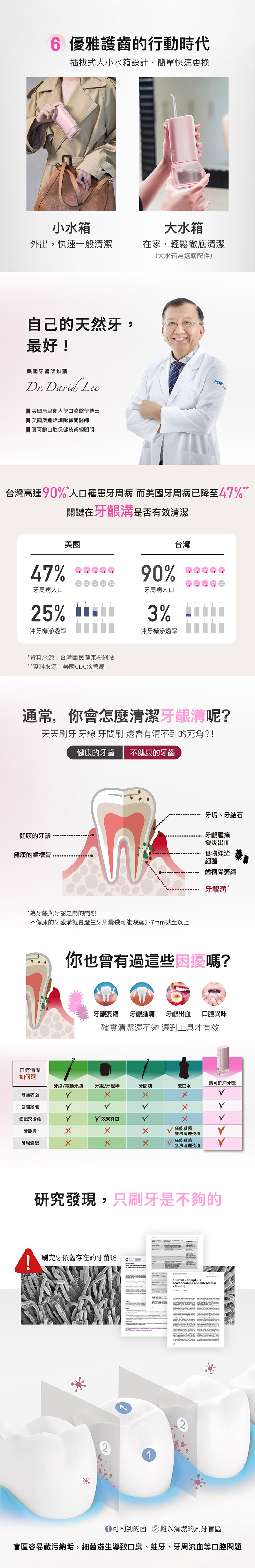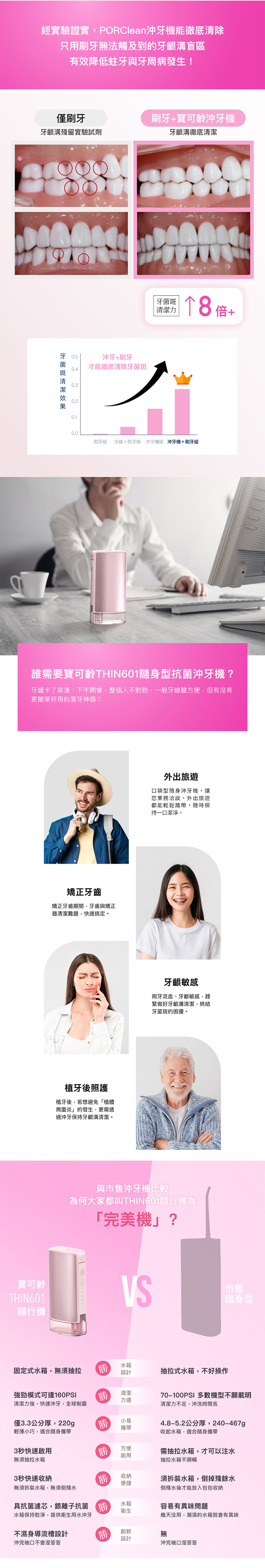 ◆實驗證實,刷牙搭配寶可齡沖牙機,牙菌斑清潔力提升8倍以上。