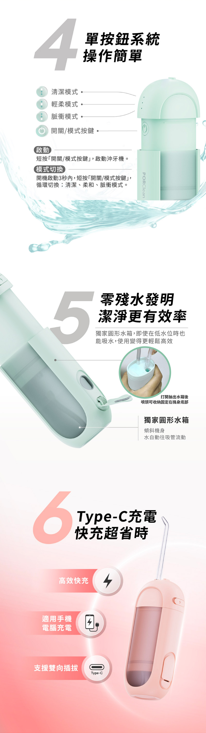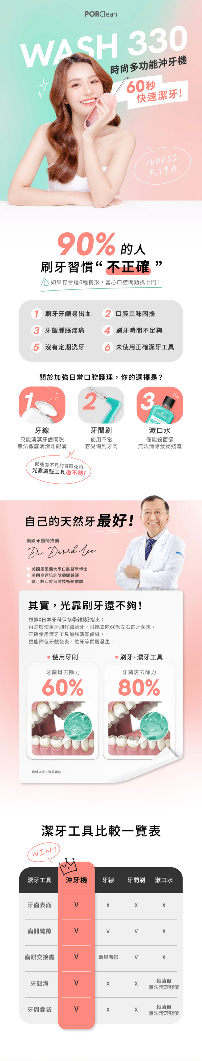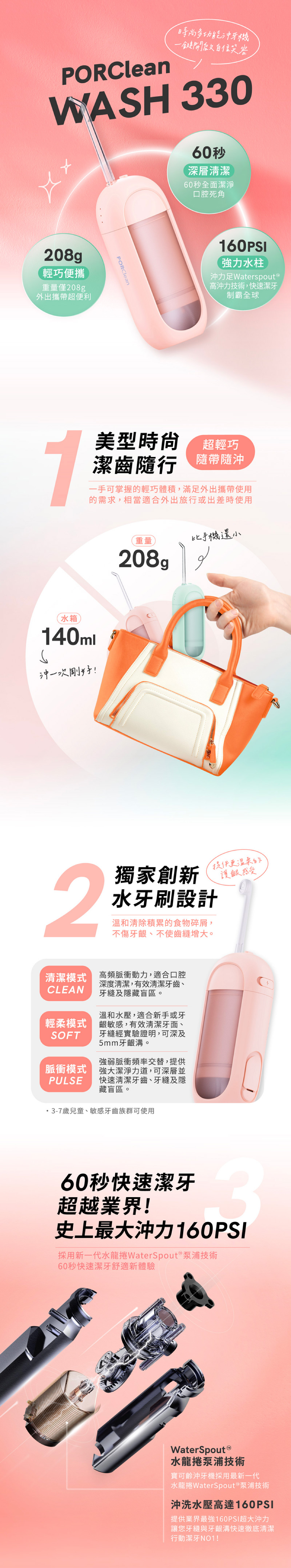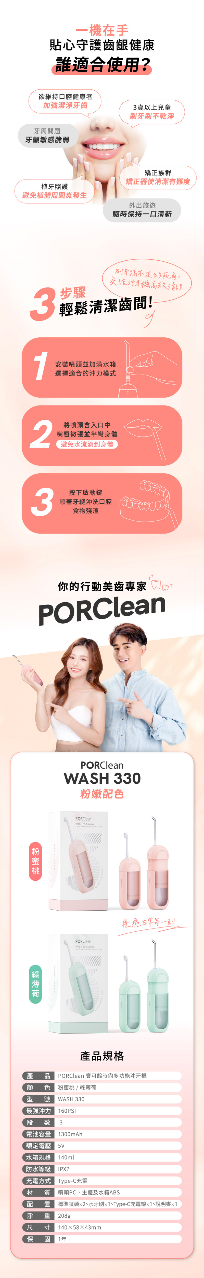 PORClean 寶可齡 多功能沖牙機WASH 330 (粉蜜桃)