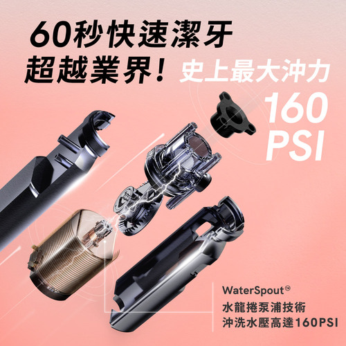 ◆史上最大沖力160PSI,採用新一代水龍捲WaterSpout泵浦技術。