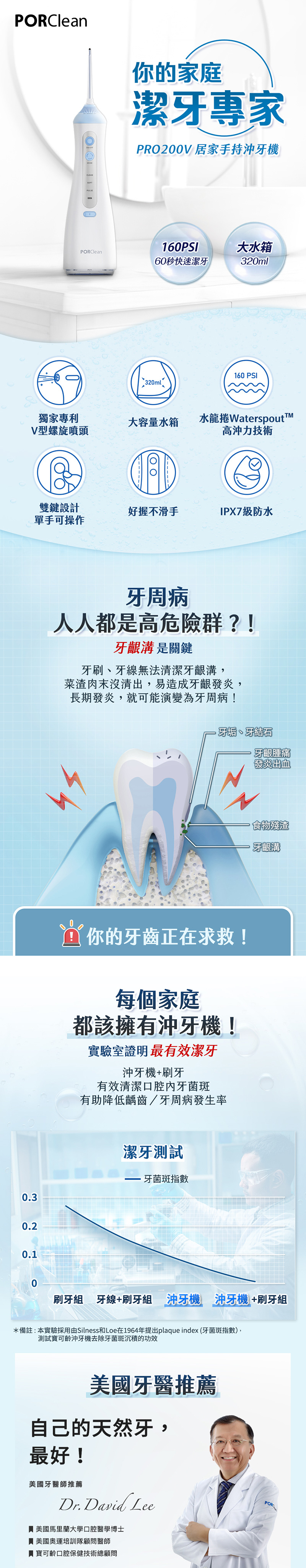 ◆實驗證明沖牙機+刷牙,可最有效清潔牙菌斑,降低齲齒與牙周病發生率。