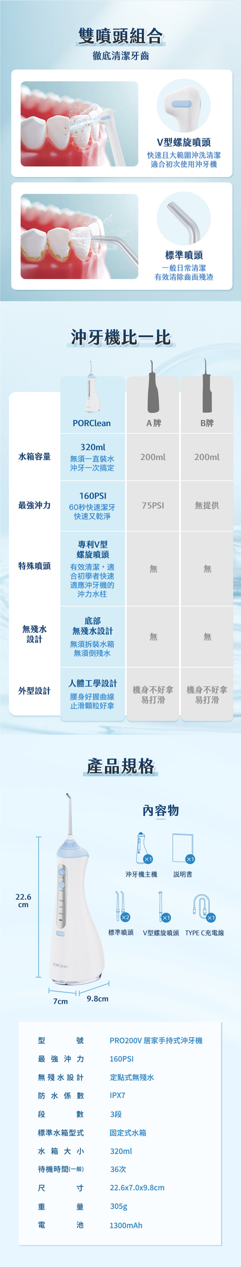 PORClean 寶可齡 多功能沖牙機PRO200V (粉藍)