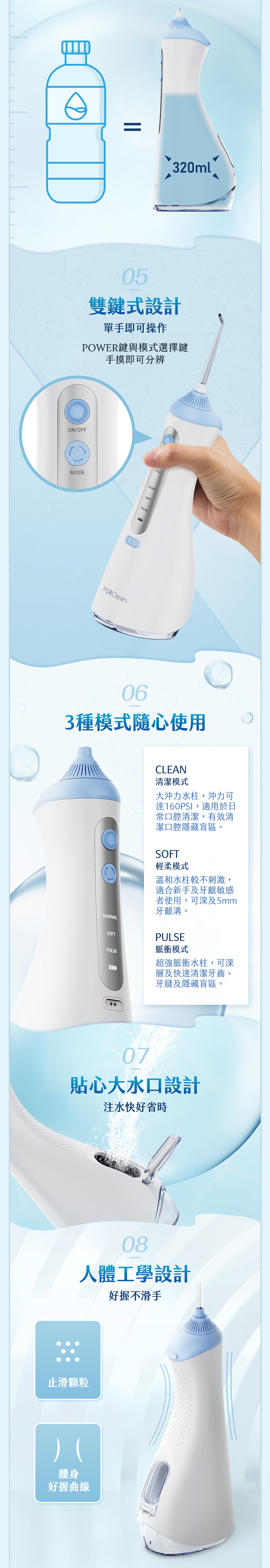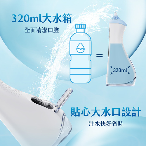 ◆320ml大水箱,免頻繁裝水,沖牙一次搞定。