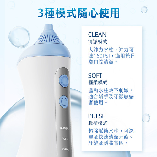 ◆清潔、輕柔、脈衝,3種清潔模式可選擇。