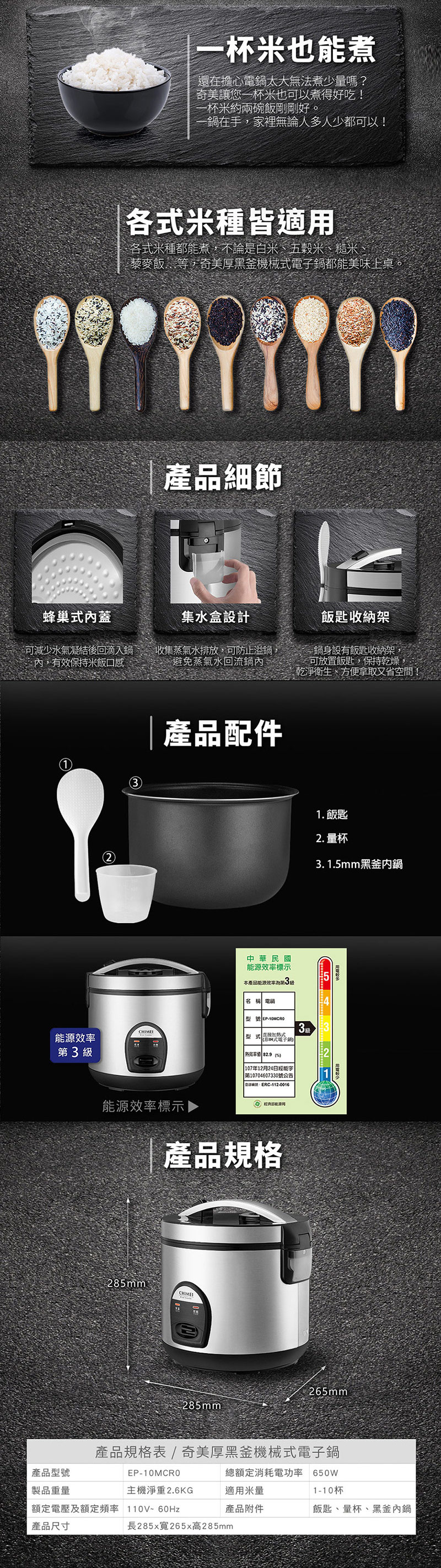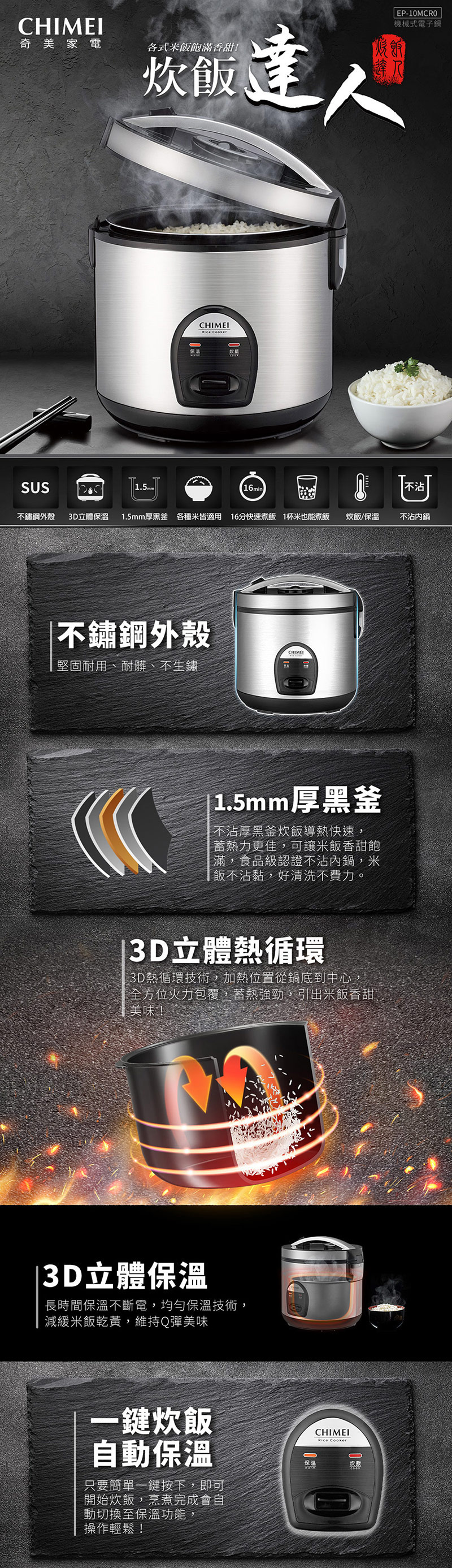 CHIMEI奇美 10人份厚黑釜機械式電子鍋 EP-10MCR0