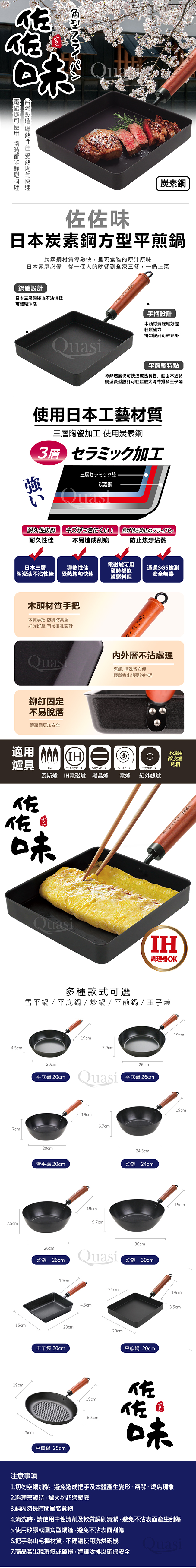 【Quasi】日式佐佐味碳鋼不沾方型平煎鍋20x21cm_2652086