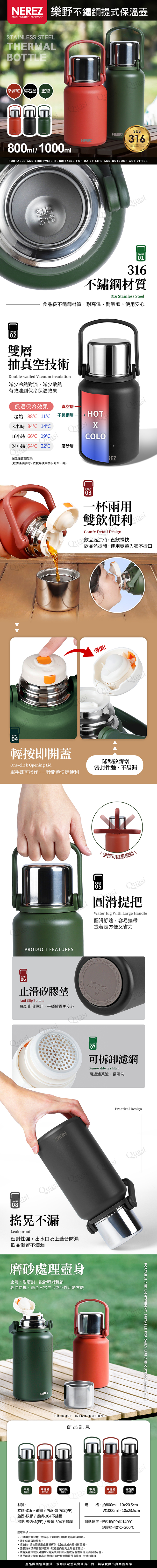 【Quasi】樂野不鏽鋼提式保溫壺1000ml 幸運紅_1519078