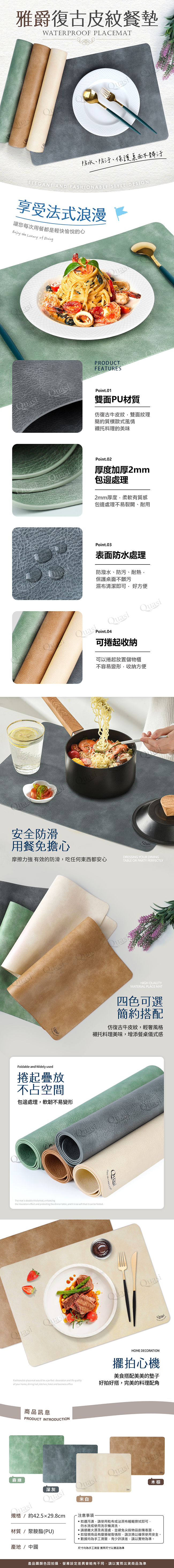 【Quasi】雅爵復古皮紋餐墊四件組42x29cm(單色)米白_C2048330-1