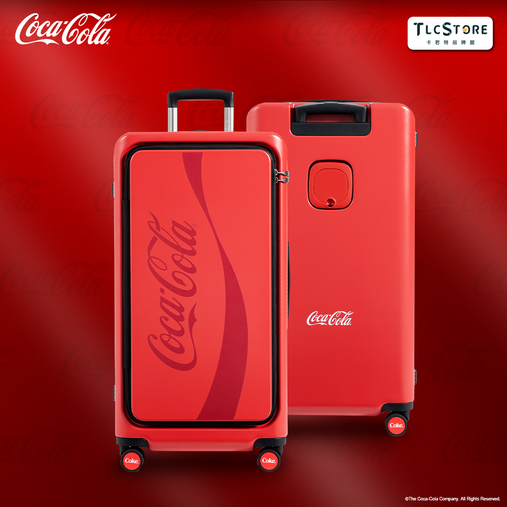 可口可樂28吋前開上掀款胖胖行李箱-紅