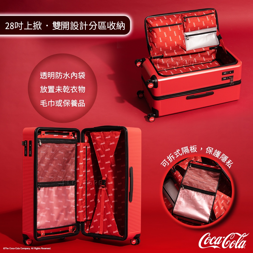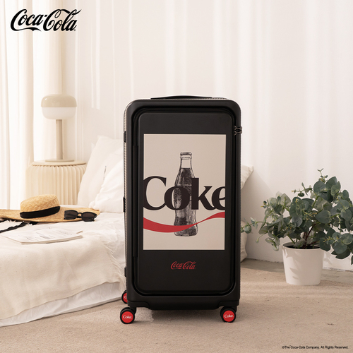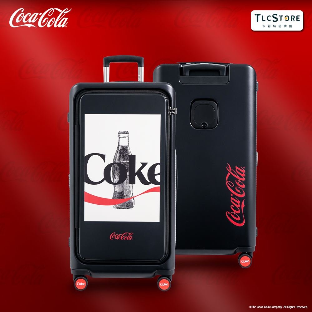 可口可樂28吋前開上掀款胖胖行李箱-黑