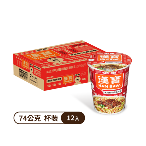 型號 | 【漢寶】黑胡椒牛肉風味麵74g(12入/箱) |