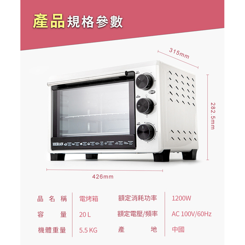 HERAN 禾聯 20L機械式電烤箱 HEO-20GL030