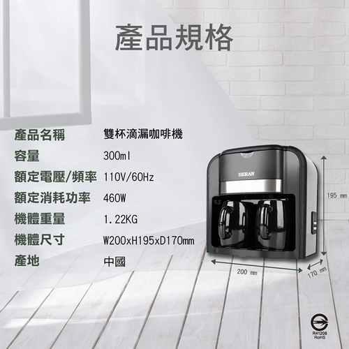 HERAN 禾聯 雙杯滴漏式咖啡機 HCM-03HZ010