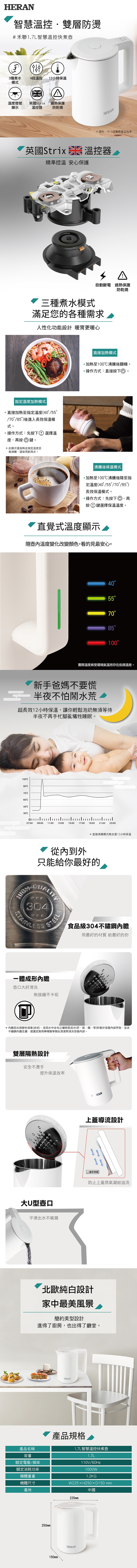 HERAN 禾聯 1.7L智慧溫控快煮壺 HEK-17GL010