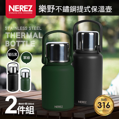Nerez不鏽鋼提式保溫壺(0.8L軍綠*1+1L黑*1)_C1519061-1