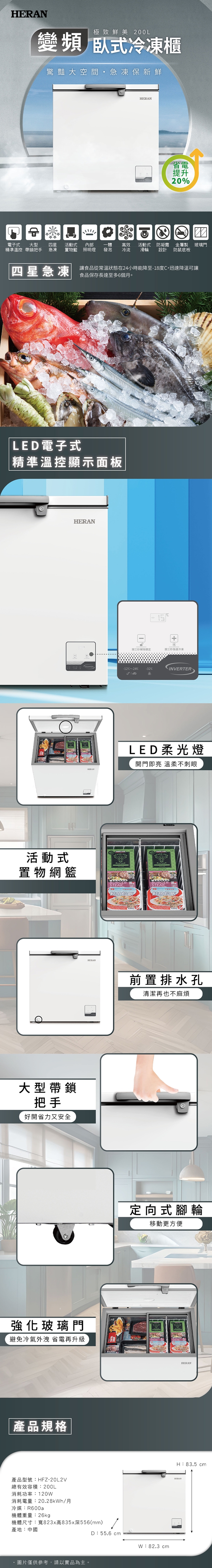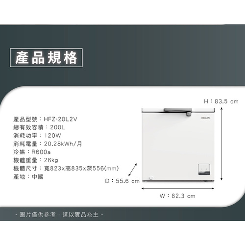 禾聯200公升變頻臥式冷凍櫃HFZ-20L2V