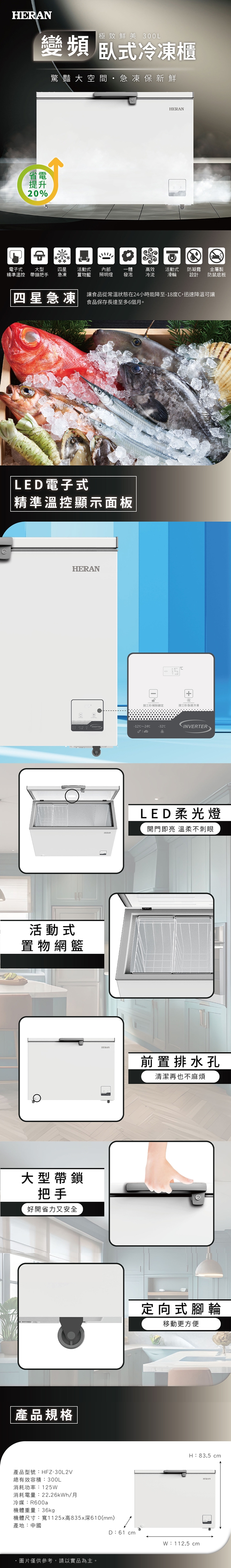 禾聯300公升變頻臥式冷凍櫃HFZ-30L2V