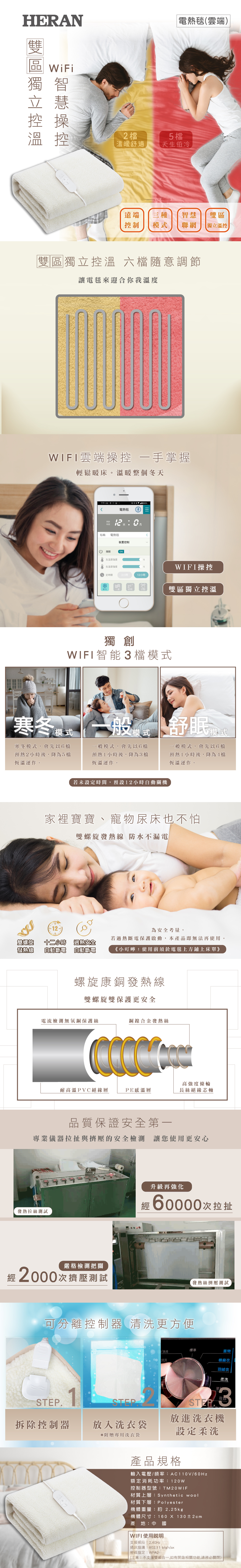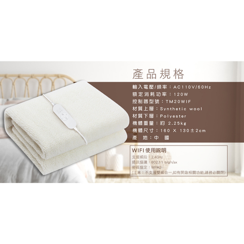 HERAN禾聯 雙區溫控羊毛絨雙人電熱毯 HEB-12NB05W