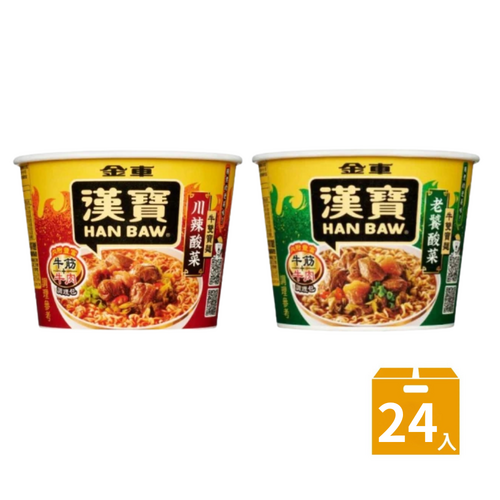 2.商品品名:【金車/伯朗】漢寶有料碗麵--12碗/箱(老饕酸菜/川辣酸菜)