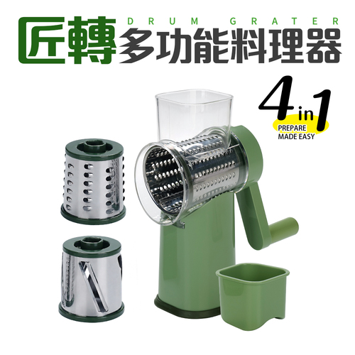 - 滾筒式切菜器,手搖轉動,快速備料