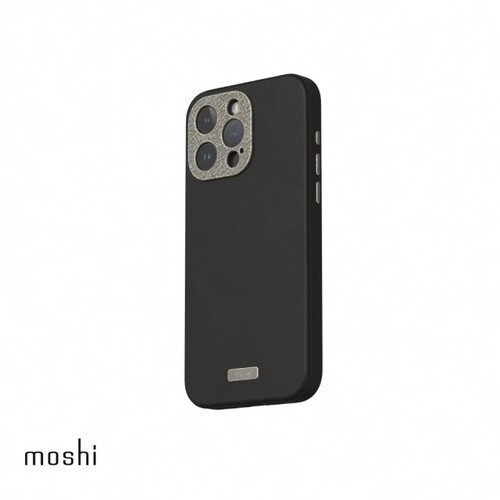 moshi Napa 皮革保護背殼-iPhone 15 Pro(午夜黑)