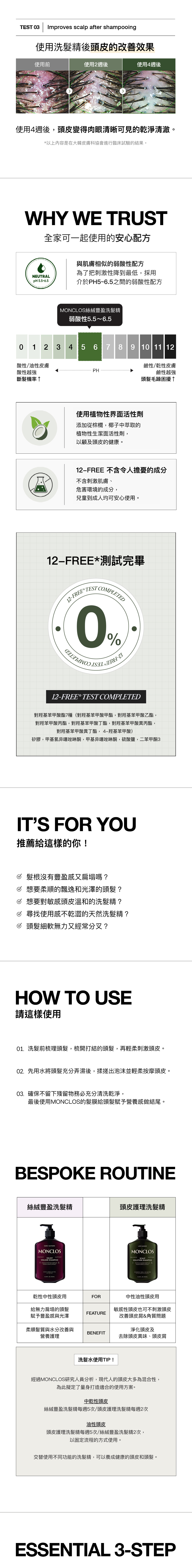 - 使用植物性來源的成分來達到深層清潔,根除造成頭皮膚產生及發癢的主要原因