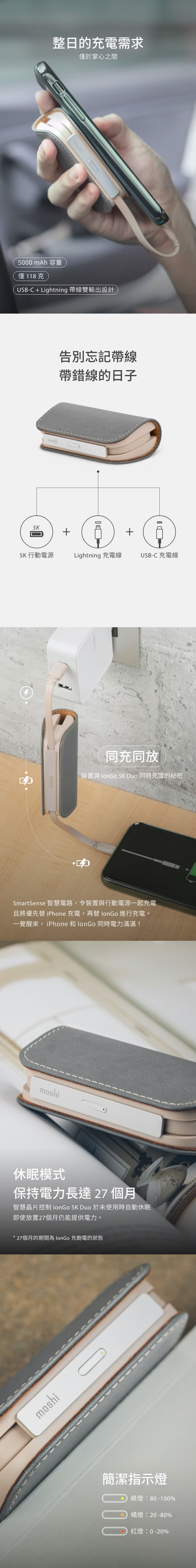 moshi IonGo 5K Duo 雙向充電帶線行動電源/瑪瑙黑