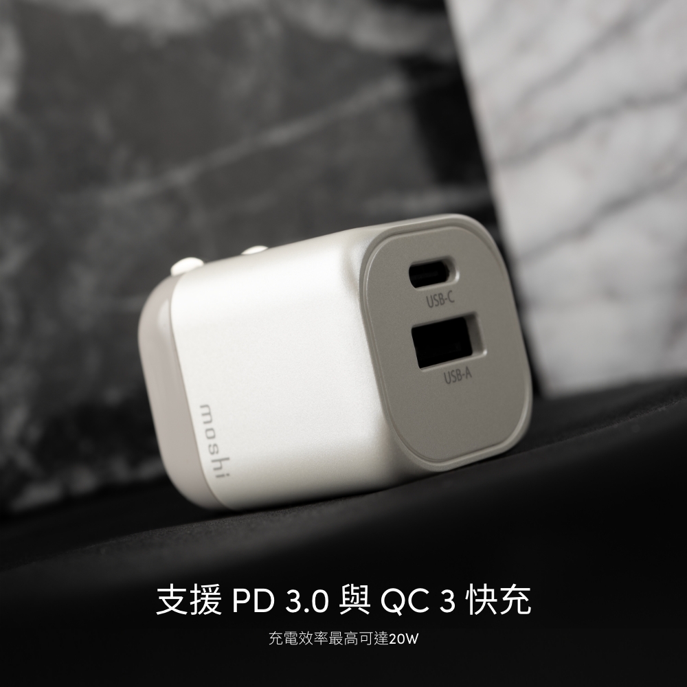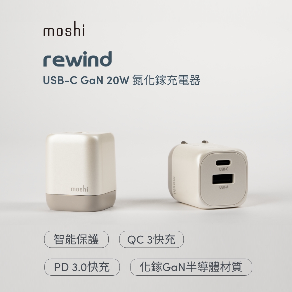 moshi_(白)Rewind USB-C 20W GaN 氮化鎵充電器 附 USB-C2A 線(1M)