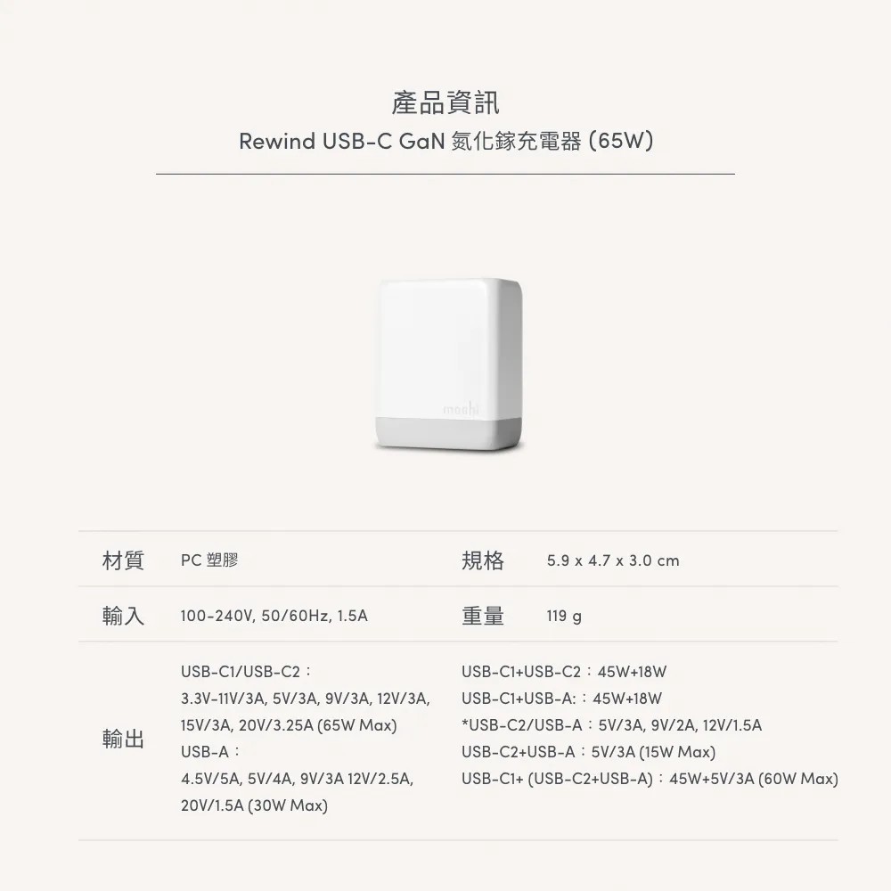 | 型號 | Rewind USB-C GaN 65W 氮化鎵充電器 |