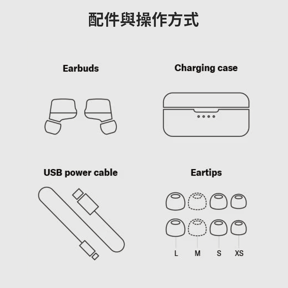 - 電池續航力共長達 24 小時(耳機 9 小時 + 耳機盒 15 小時)
