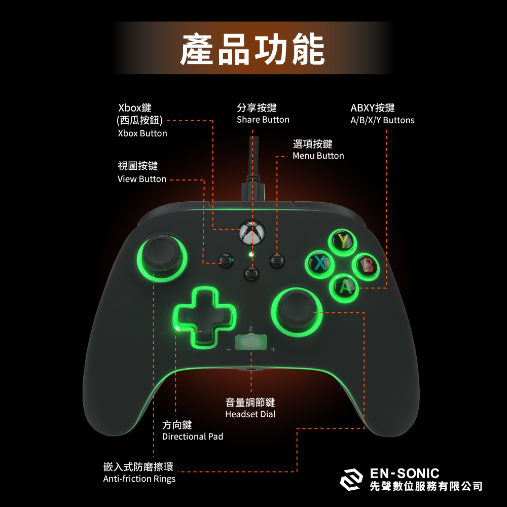 PowerA 【XBOX 官方授權】 炫光增強款有線遊戲手把(1522360-01)